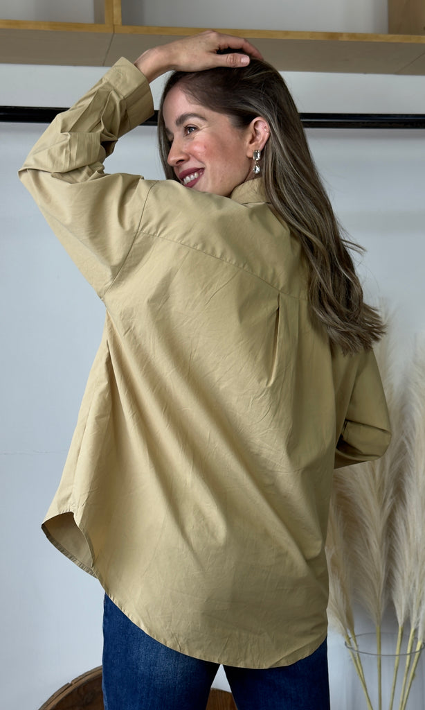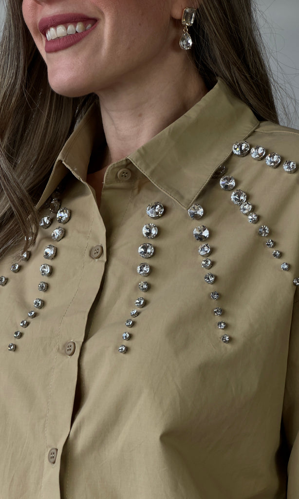 Khaki Rhinestone Detail Button Blouse