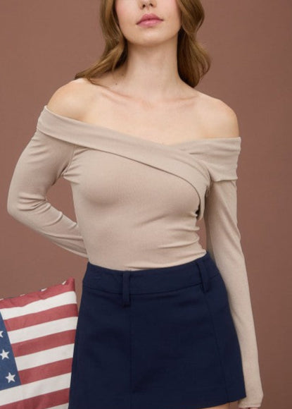 Off Shoulder Wrap Long Sleeve Top