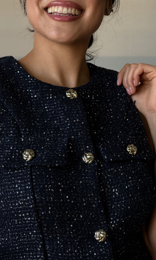Sequin Button Tweed Vest