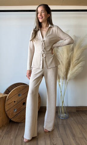 Textured Wide Leg Pants