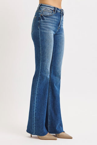 HIGH RISE FLARE JEANS - Rise 10 1/2" | Inseam 33" in size 3/26 - Model Info: Height 5'8" | Waist 24" | Hips 34" - Model is wearing size 1