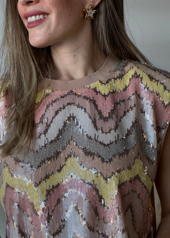 Blush Multi-Colored Sequin Blouse