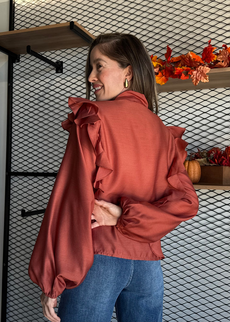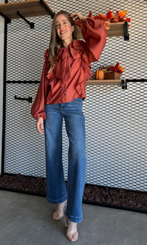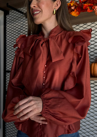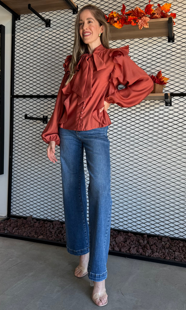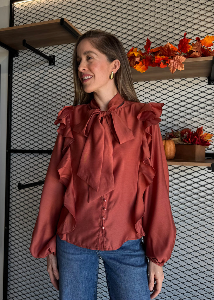 Soft Wool Bow Tie & Pearl Buttons Blouse
