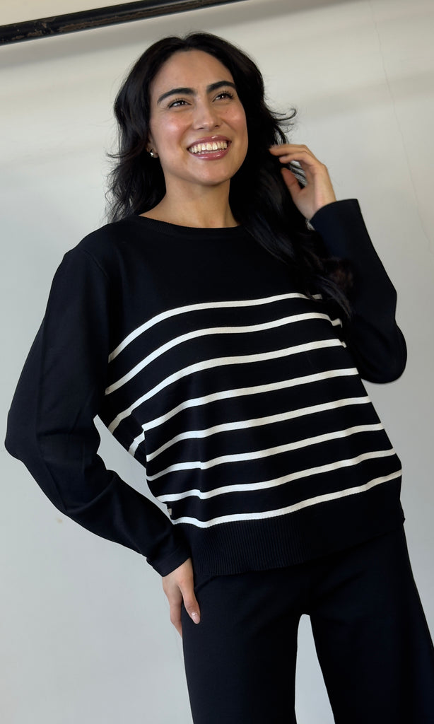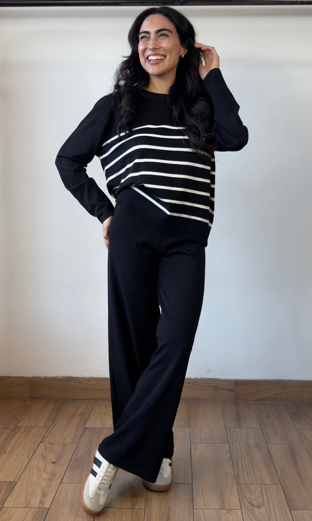 White Stripe Sweater Top With Pants Set