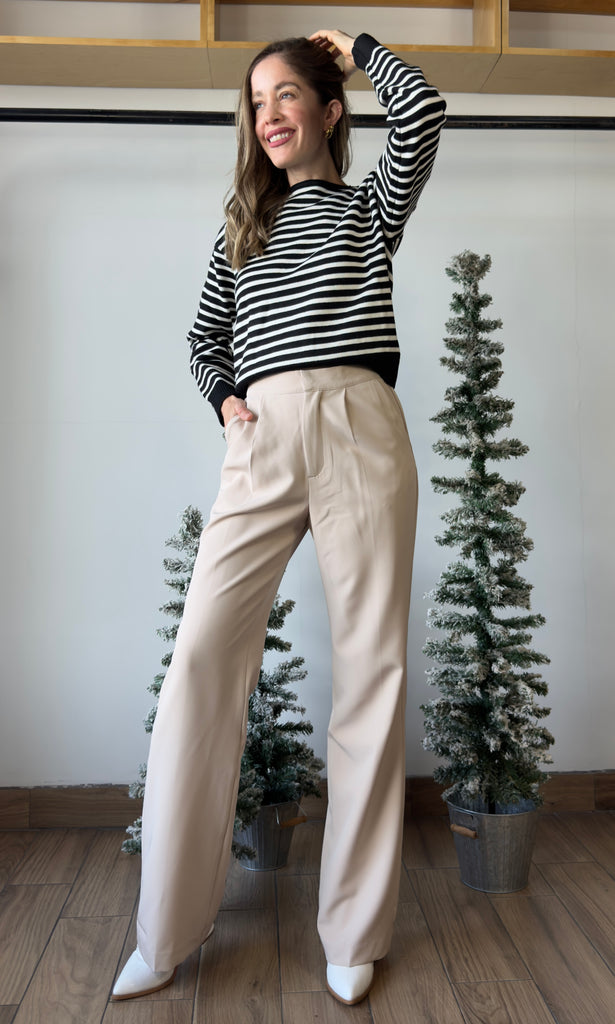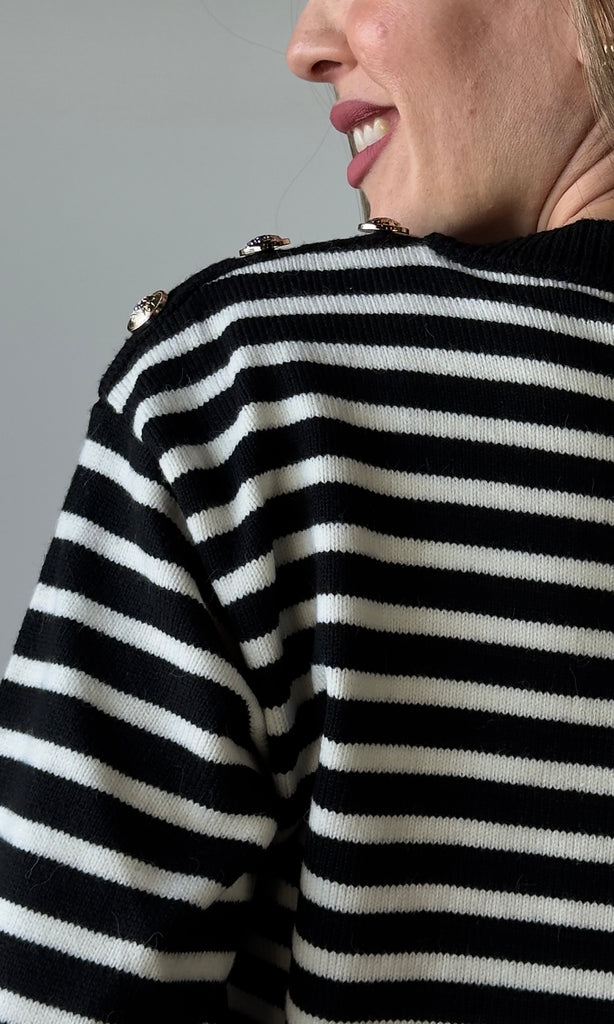 Buttoned Shoulder Stripe Sweater