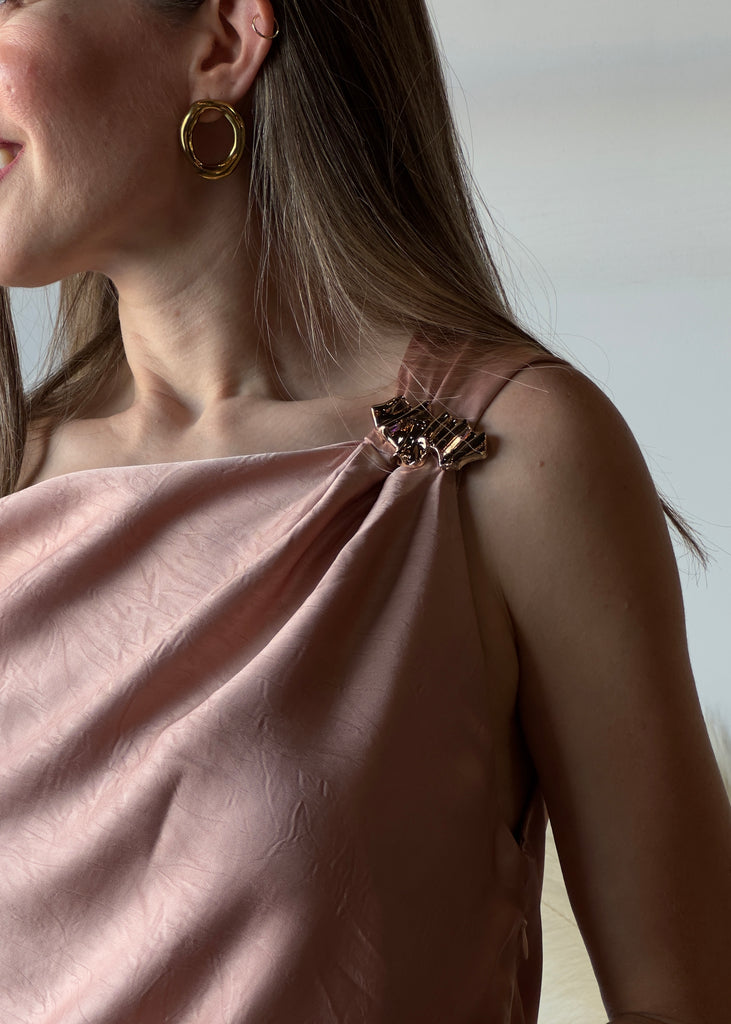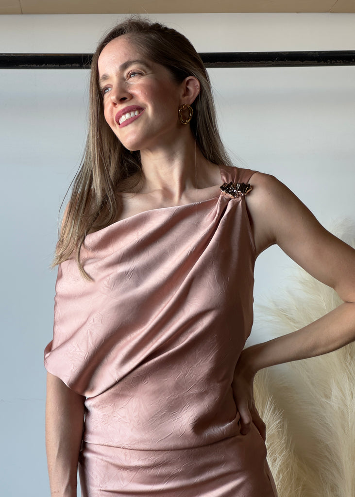 One-shoulder Satin Drape Midi Dress