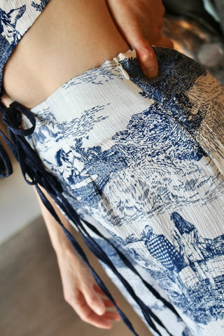 White and Navy Print Pants