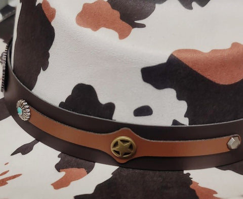 Cow Print Western Long Horn Strap Cowboy Hat