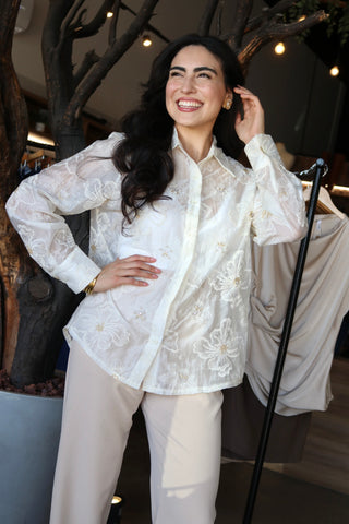 Embroided Button Blouse