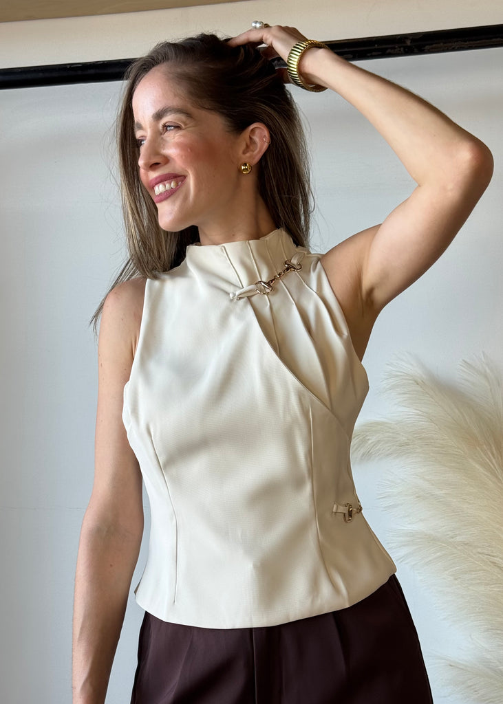 Gold Details Beige Top
