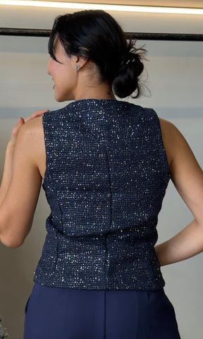 Sequin Button Tweed Vest
