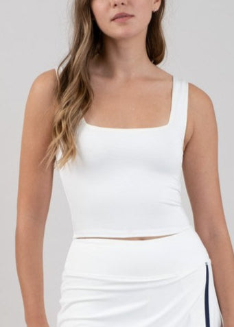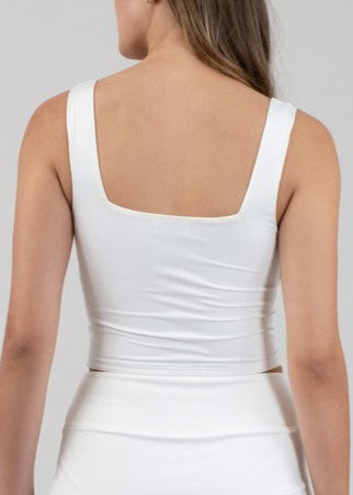 White Cropped Square Neck Tank