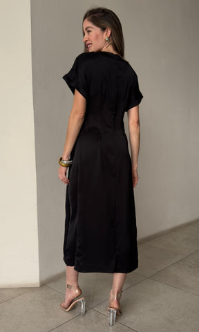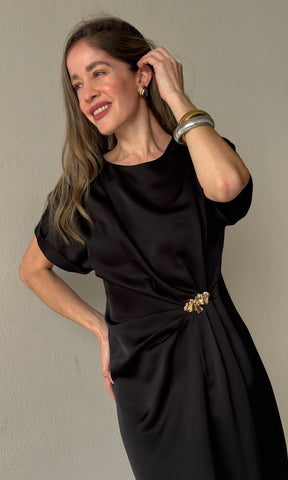 Gathered Metal Trim Short Sleeve Dress