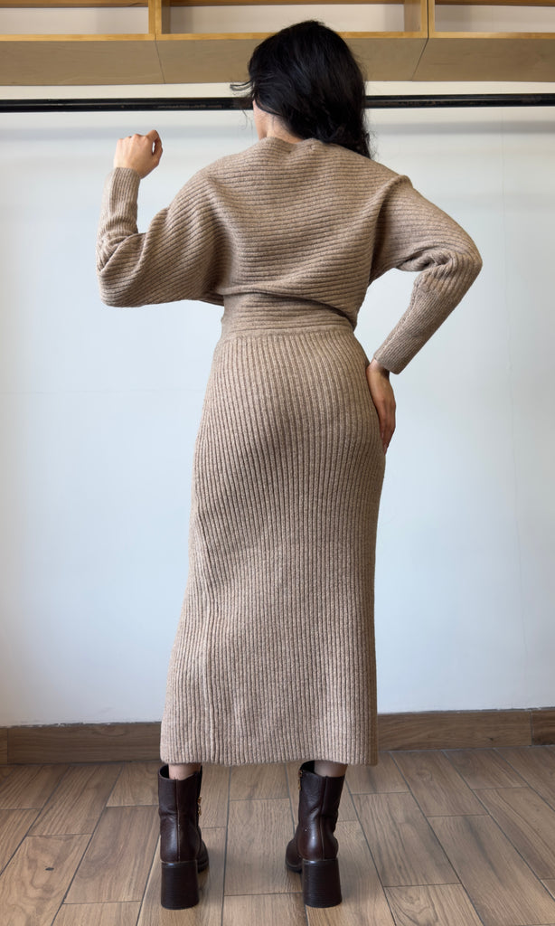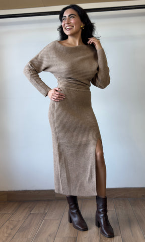 One Shoulder Slit Midi Sweater Dress