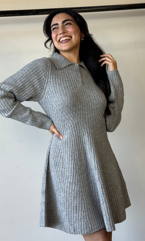 Ribbed Sweater Flared Mini Dress