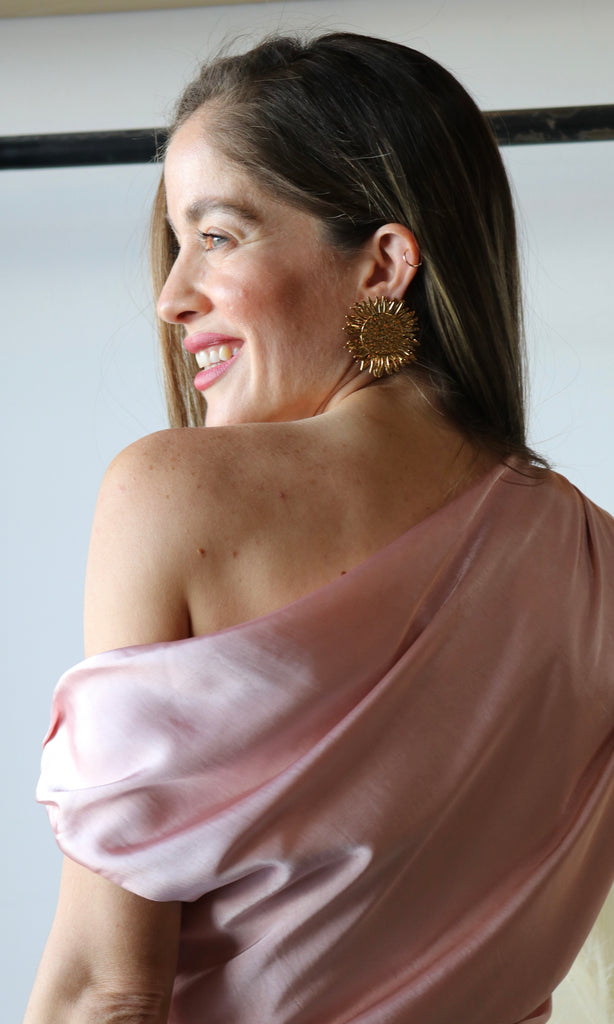 Satin Effect Trim Asymmetric Top