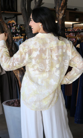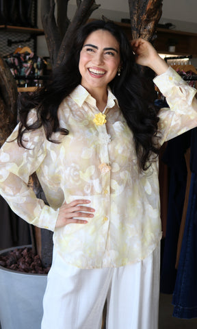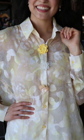 Yellow Flower Button Detail Blouse