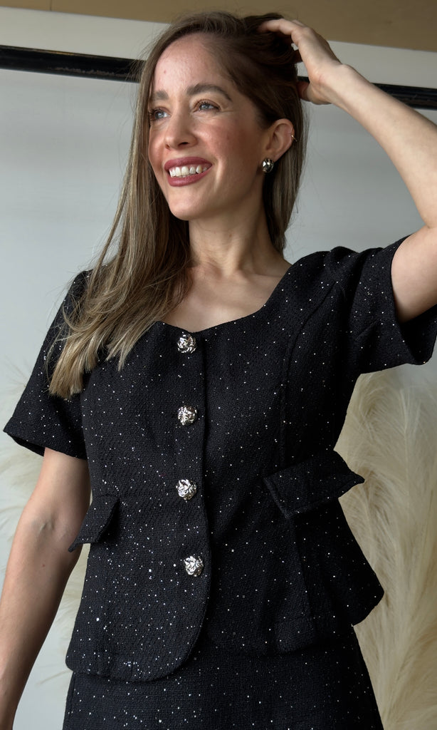 Tweeded Square Neck Top