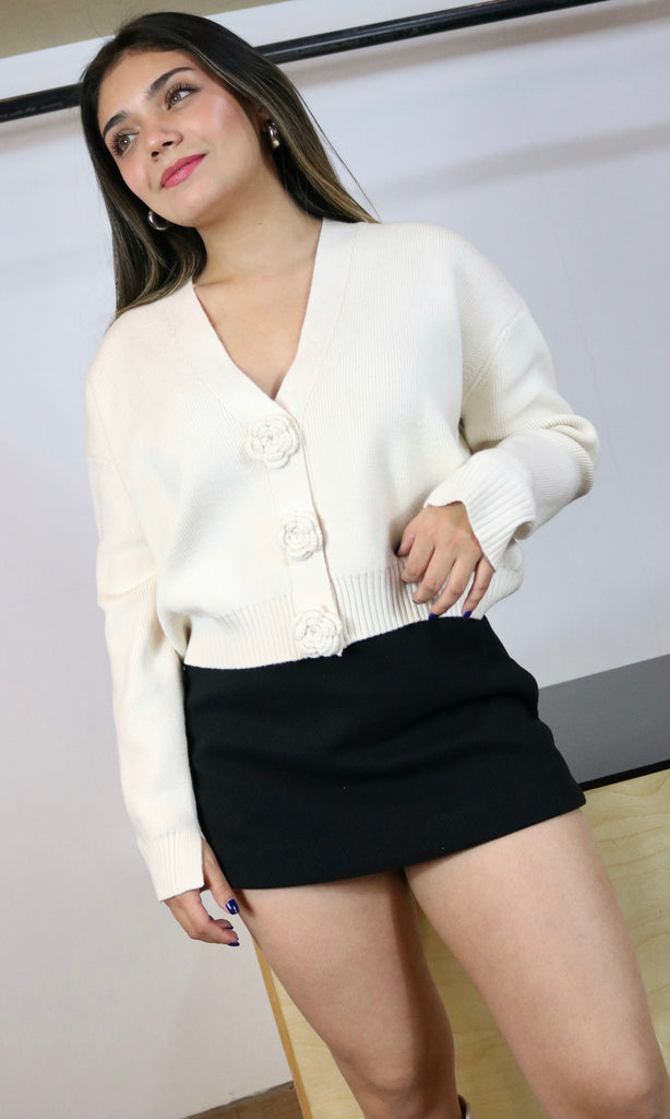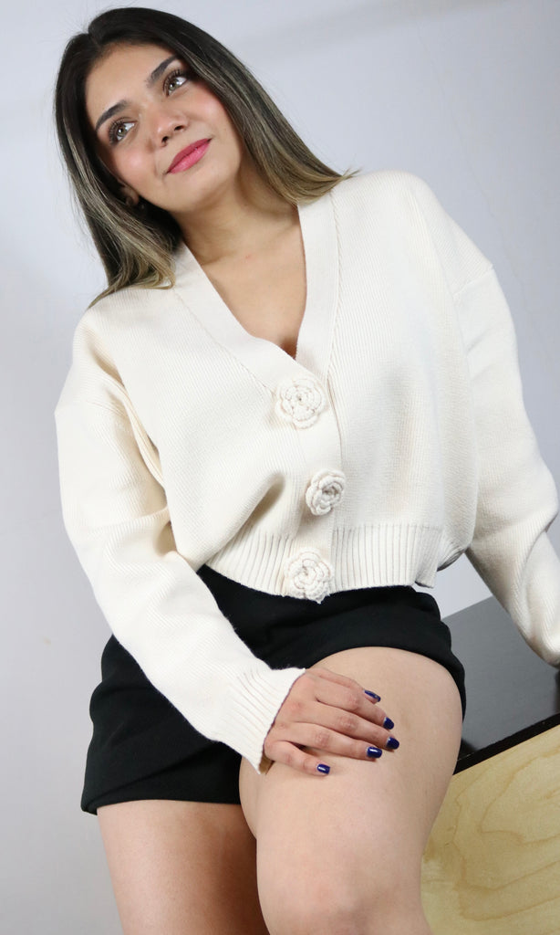Button Flower Detail Cardigan