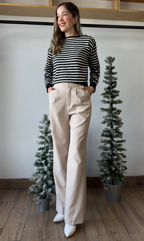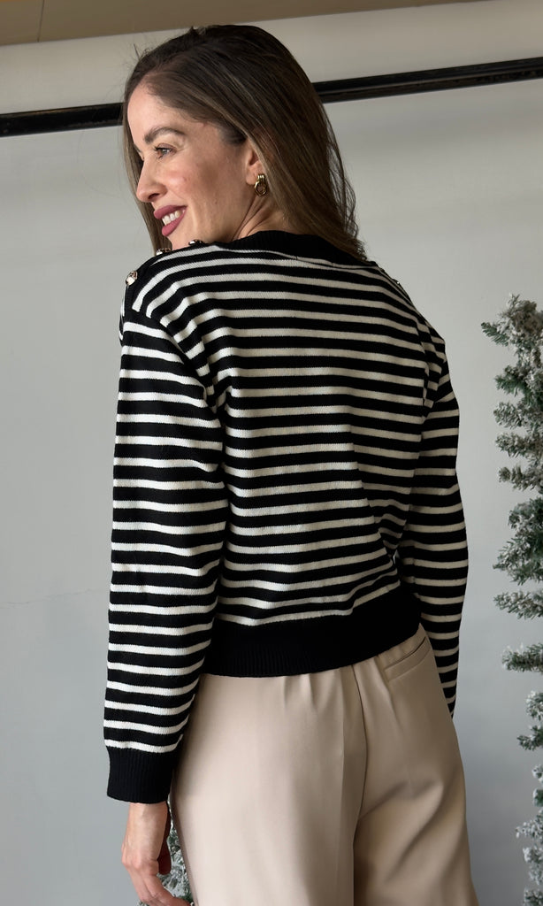 Buttoned Shoulder Stripe Sweater