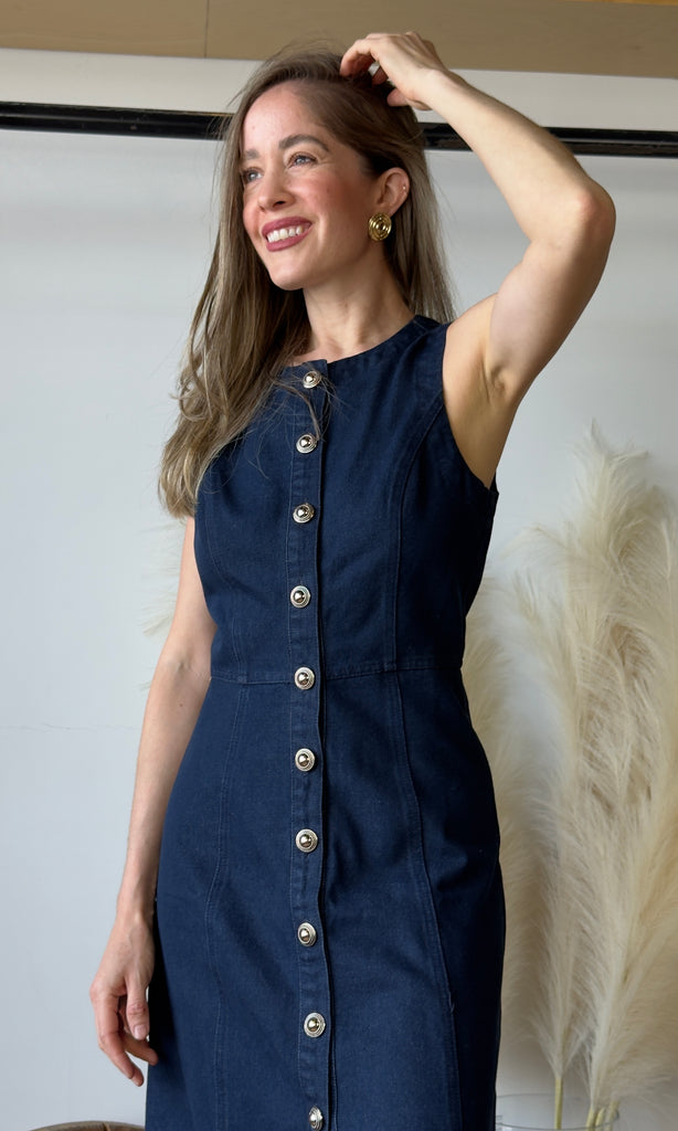 Denim Silver Button Dress